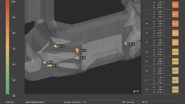 如果蔡司自动缺陷检测软件在在线操作过程中发现关键缺陷,则使用蔡司PiWeb数据管理软件创建报告,允许您再次查看和评估3D缺陷。例如,如果人工检查的结论是缺陷是由沙眼引起的,您可以轻松地去除缺陷的来源,避免不必要的报废,节省大量资金。该软件还可以以表格形式显示结果,并以csv等常见格式导出